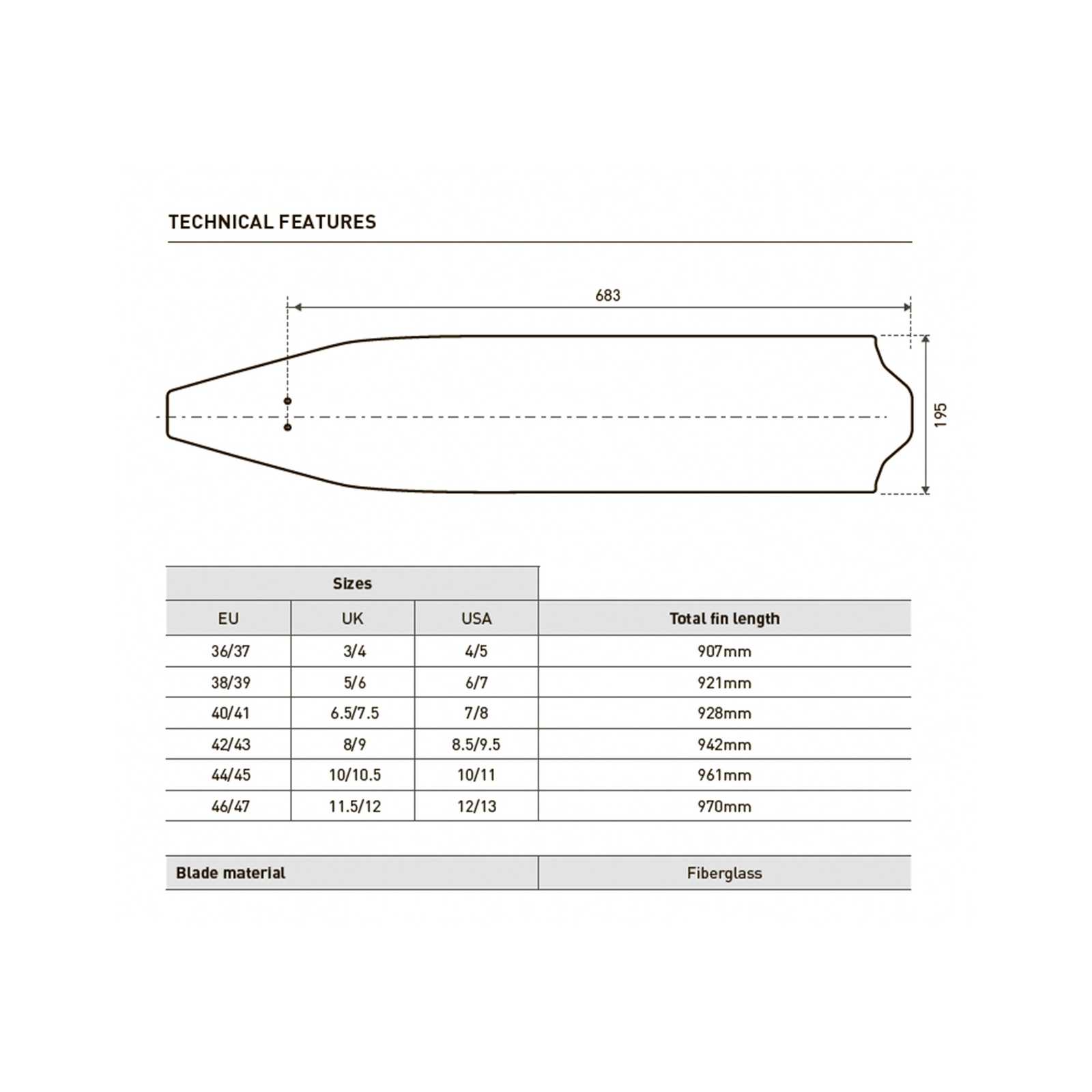 Płetwy X-Wing Fiber Soft marki Mares to wysokiej klasy narzędzie dla freediverów poszukujących wydajnego i komfortowego napędu pod wodą. Ostrza wykonano z pre-impregnowanych warstw włókna szklanego z zastosowaniem specjalnej żywicy, co daje lekkość, responsywność i długą żywotność. Zmienna grubość ostrza oraz paraboliczna strefa ugięcia zapewniają optymalny stosunek mocy do komfortu, a 30° nachylenie względem kieszeni na stopę ułatwia efektywne przenoszenie siły przy średniej częstotliwości kopnięć. Ostrza o szerokości 195 mm i długości 670 mm są zaprojektowane tak, by minimalizować zmęczenie mięśni podczas dłuższych zejść. Zoptymalizowane żebra boczne poprawiają kanałowanie wody i wzmacniają ciąg, natomiast konstrukcja z wymiennymi ostrzami i możliwość użycia bez skarpet neoprenowych zwiększa uniwersalność zastosowań. Model Soft jest dedykowany lżejszym użytkownikom lub tym preferującym bardziej elastyczne ostrze dla płynniejszego kopnięcia.