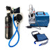 It includes a 1,1 L cylinder of 300 bar with the regulator system. Very easy to use, you just have to take the regulator in your mouth and breathe!