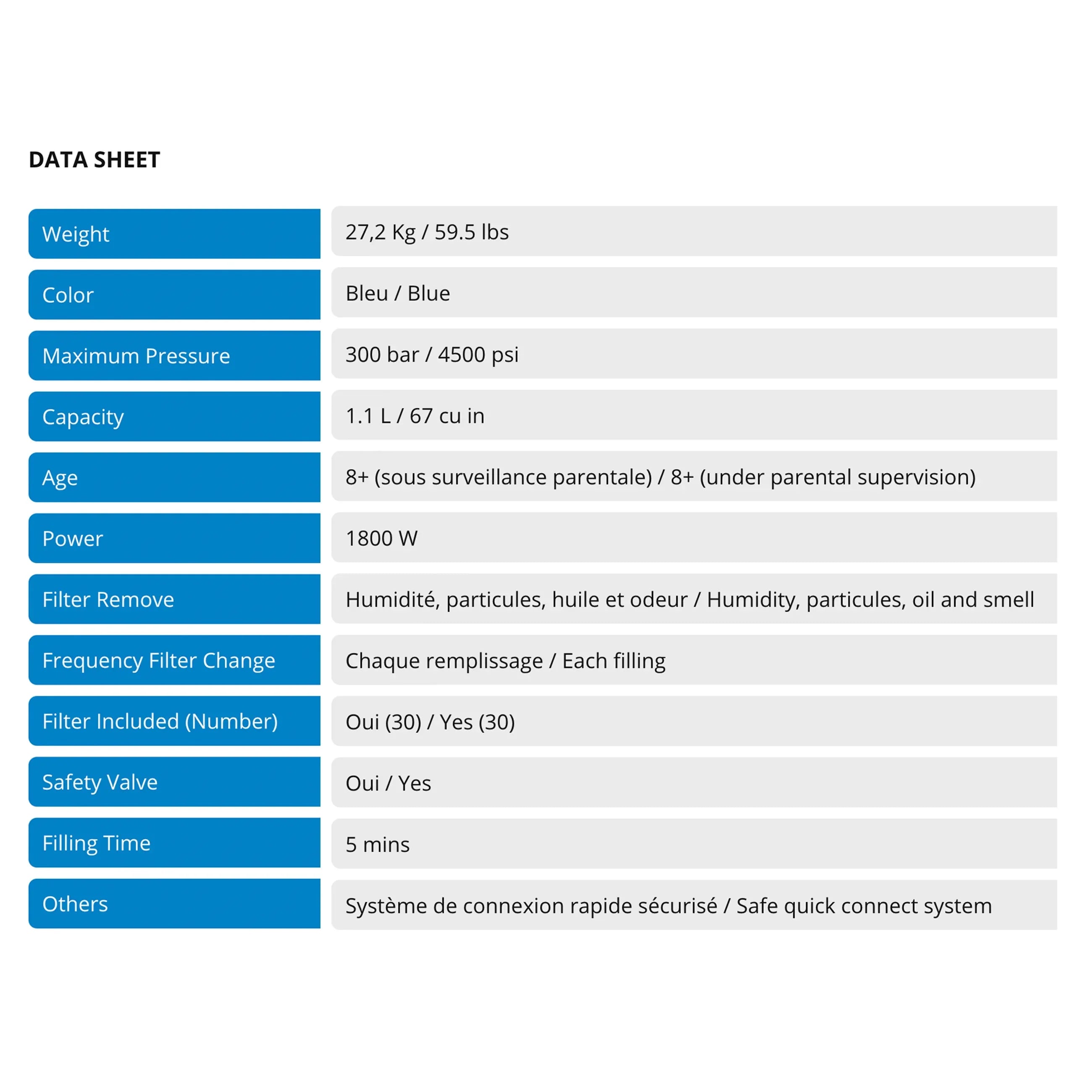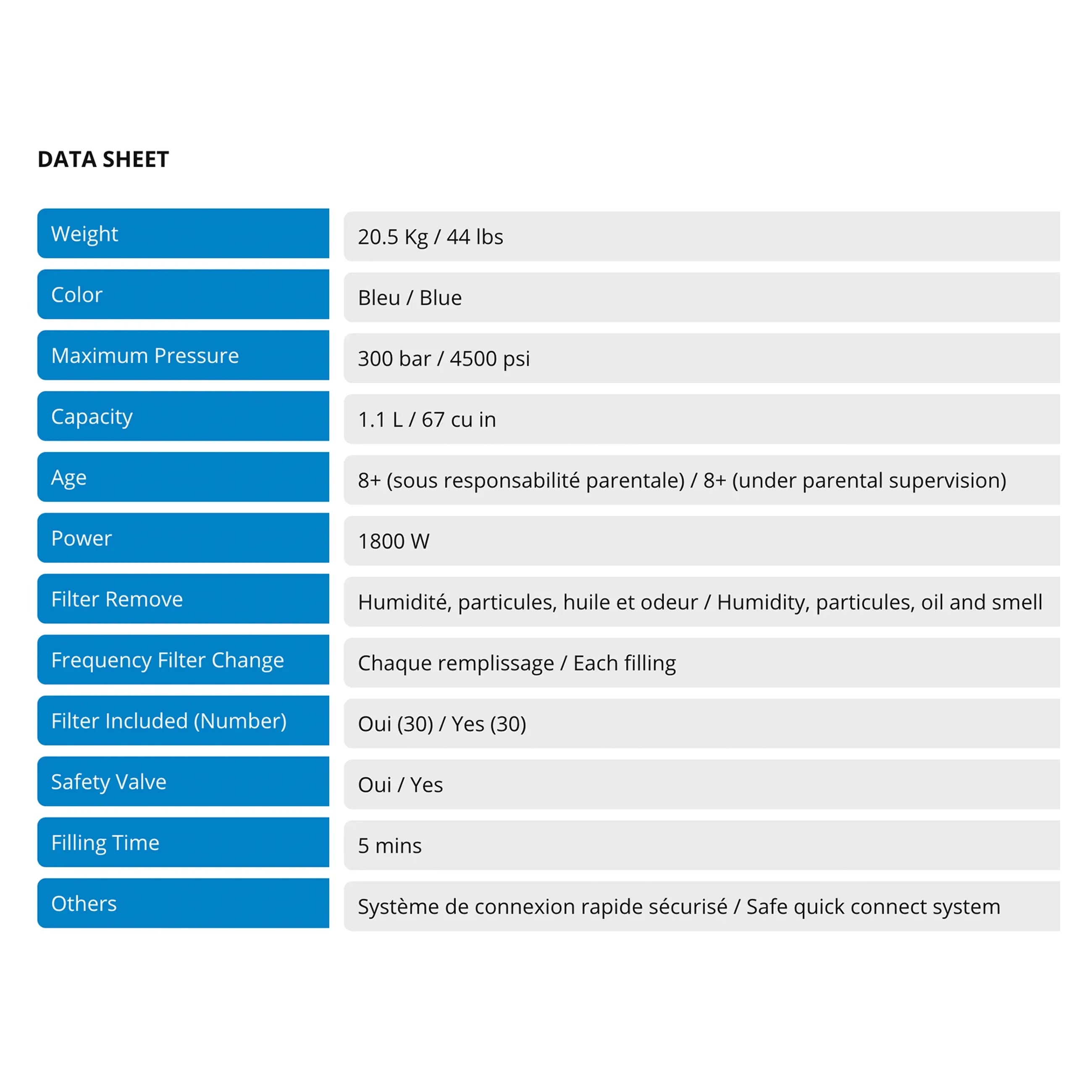 All products are certified to meet European and world standards, which ensures maximum safety for every user. All cylinders are tested at 300 bar before being marketed.