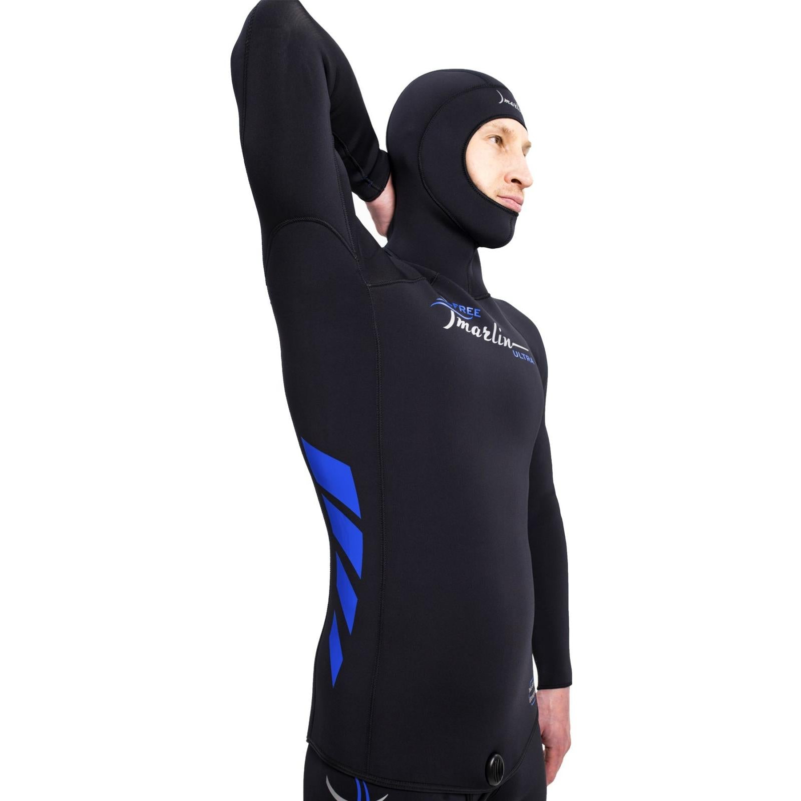 Der Freediving Komplettanzug mit Kapuze Ultra von Marlin bietet eine hervorragende Kombination aus Komfort und Funktionalität für Freitaucher. Hergestellt aus weichem, elastischem Neopren mit einer Dicke von 5 mm, überzeugt das Anzug-Design durch seinen anatomischen Schnitt, der eine perfekte Passform gewährleistet. Die Kombination aus Ultraspan 3.0 außen und weich gepolstertem XTEND 2.0 innen sorgt nicht nur für einen hohen Komfort, sondern ermöglicht auch eine einfache Ankleidung auf der Haut. Innovative Technologien wie das umweltfreundliche, lösungsmittelfreie Aqua-Basierkleber und verstärkte Knie aus Supratex machen diesen Anzug besonders langlebig und zuverlässig. Für Freitaucher bietet der Anzug eine optimale Abdichtung im Gesichtsbereich und eine individuelle Anpassungsfähigkeit, was zu einer deutlich verbesserten Antriebskraft und verringerter Ermüdung führt.