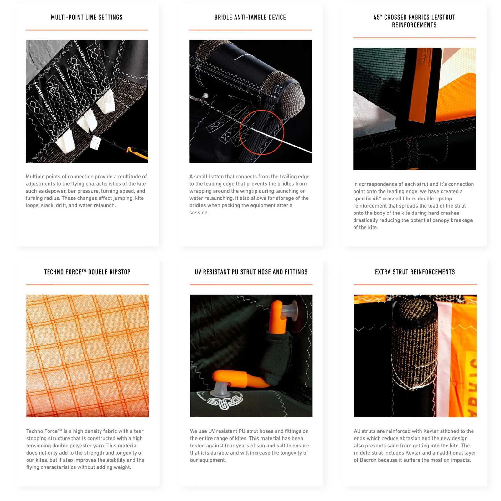 - Innovative Konstruktion: 3-Strut Design mit zusätzlichen Kevlar-Verstärkungen für verbesserte Stabilität.