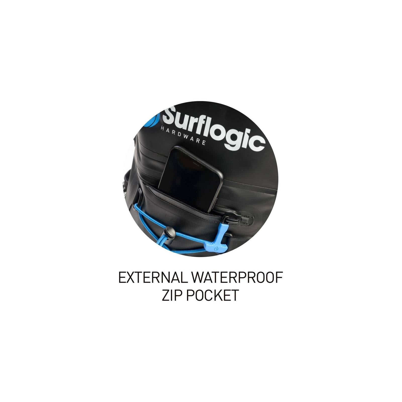 Beschreibung: Der Surflogic Prodry 30L ist ein robuster, wasserdichter Rucksack, der Ihre Ausrüstung bei Regen, Spritzwasser und auf nassen Abenteuern zuverlässig schützt. Dank IP66-Schutz und Roll-Top-Verschluss bleibt der Inhalt trocken, während Sie gleichzeitig nasse oder sandige Utensilien sicher isoliert transportieren können. Leichte TPU-Konstruktion und hochfrequenz-verschweißte Nähte sorgen für Langlebigkeit ohne zusätzliches Gewicht. Für Komfort auf Touren sind die gepolsterten, verstellbaren Träger, der atmungsaktive Rückenbereich und ein justierbarer Brust- und Hüftgurt an Bord. Ein außen liegendes, regenfestes Reißverschlussfach, elastische Seitentaschen aus Mesh und ein internes Netzfach mit Reißverschluss halten Essentials griffbereit und organisiert. Reflektierende Elemente an den Gurten erhöhen die Sichtbarkeit in der Dämmerung. Ideal für tägliche Pendelstrecken, Strandtage, SUP, Kajak, Segeln oder Wochenendtrips – überall dort, wo Schutz, Ordnung und Tragekomfort gefragt sind.