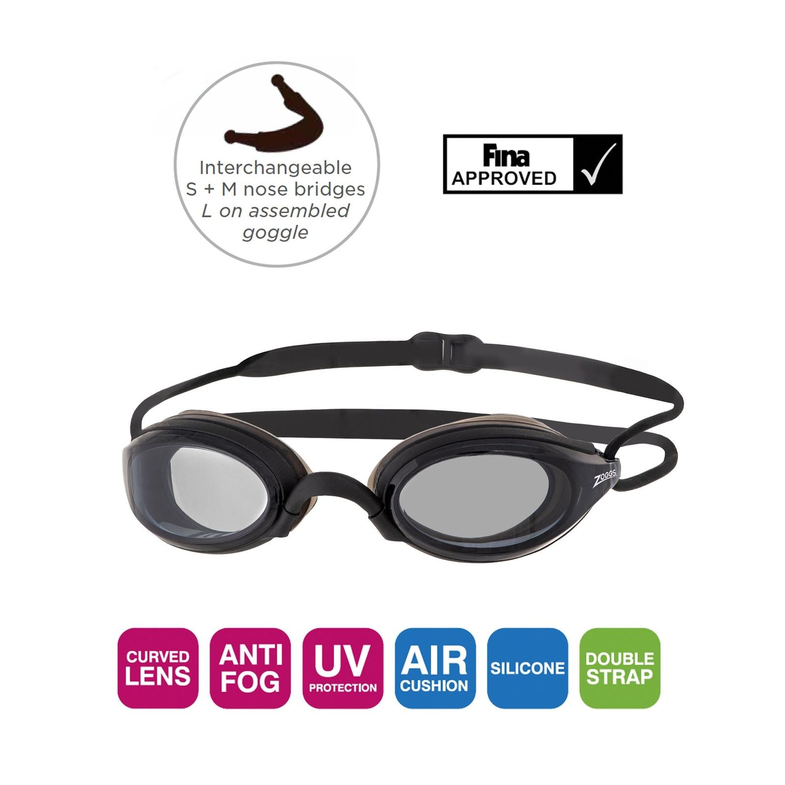 Schwimmbrille Fusion Air Schwarz Tönung-Rauch Linsen Zoggs 461012BKBKTSM