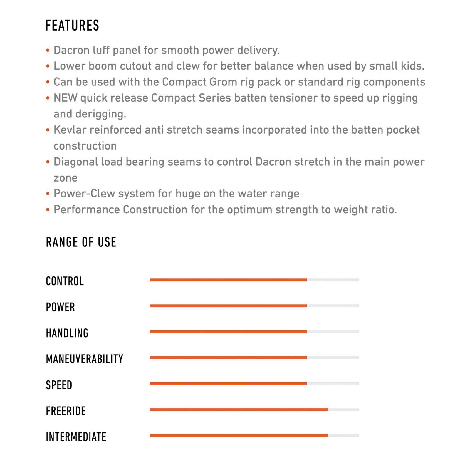 Das Windsurf Segel Compact Sail Compact Grom Y26 ist ideal für Freizeit- und fortgeschrittene Windsurfer geeignet, die Wert auf Leistung und Handling legen. Es eignet sich besonders gut für Windsurfer, die in unterschiedlichen Bedingungen, von ruhigen Gewässern bis hin zu aufgewühltem Wasser, fahren wollen. Die beste Performance erzielt dieses Segel in mittleren bis starken Winden. Für optimalen Einsatz empfehlen wir die Kombination mit einem leichten Windsurf-Board und Schutzkleidung.